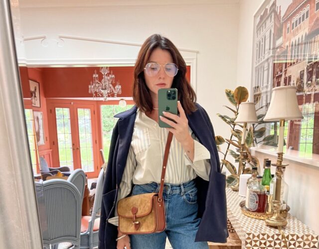 This pair of jeans has a hold on me. I have been wearing my grey ones nonstop and have gotten compliments on them at the grocery store. It’s a great cut if you miss the style of denim with a narrower leg but still want to feel very current. I love pairing cream denim with crisp whites and navy. Pair these with a tucked-in blouse or a fitted tee for an effortless yet elegant silhouette.